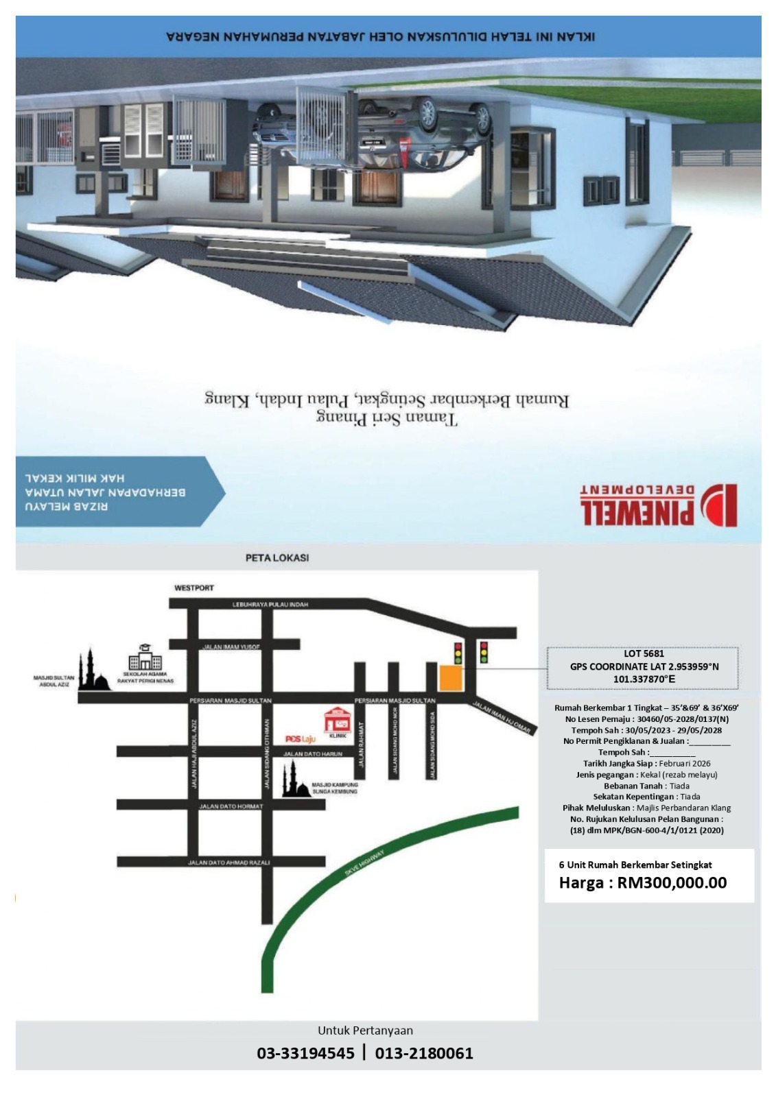 - PROJEK PERUMAHAN INI MERUPAKAN SATU-SATUNYA PEMBANGUNAN RUMAH BERKEMBAR DI LEMBAH KLANG DI BAWAH PROGRAM PPAM ATAS TANAH REZAB MELAYU DENGAN KELUASAN LOT SEBANYAK 3 EKAR INI YANG MENGANDUNGI 28 UNIT RUMAH SEMI-D SETINGKAT..LOKASI PROJEK TERLETAK DI PULAU INDAH, KLANG. PROJEK PERUMAHAN TAMAN SERI PINANG DI PULAU INDAH KINI TELAH MENCAPAI 80% KEMAJUAN. PENUTUPAN BUMBUNG TELAH SIAP DILAKSANAKAN. SELEPAS INI, KERJA-KERJA DALAMAN SEPERTI PEMASANGAN SISTEM ELEKTRIK, JUBIN, CAT DAN PAIP AKAN DIMULAKAN. PROJEK INI DIJANGKA AKAN TERUS BERJALAN LANCAR HINGGA SIAP SEPENUHNYA PADA FEBRUARY 2026