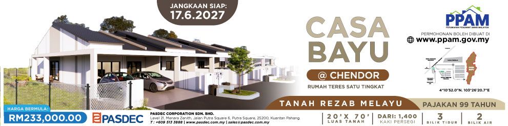 CASA BAYU MERUPAKAN RUMAH TERES SATU TINGKAT, LUAS TANAH 20' X 70' (MINIMA), YANG MEMPUNYAI 3 BILIK TIDUR DAN 2 BILIK AIR. TANAH BERSTATUS REZAB MELAYU, PAJAKAN SELAMA 99 TAHUN. TANDA TUMPUAN IALAH (LANDMARK) PINTU GERBANG KUANTAN-KEMAMAN.PROJEK INI BERHAMPIRAN DENGAN INSTITUSI KERAJAAN YANG BERADA DALAM RADIUS LINGKARAN 10KM, SEPERTI INTAN (INSTITUT TADBIRAN NEGARA) (3KM), SK SERI GELIGA, SMK GELIGA (4KM), SMK MAK LAGAM , MAJLIS PERBANDARAN KEMAMAN (7KM), HOSPITAL KEMAMAN, PEJABAT TANAH DAN DAERAH KEMAMAN, PEJABAT AGAMA DAERAH KEMAMAN (8KM), JABATAN PENDAFTARAN NEGARA KEMAMAN, PEJABAT PENDIDIKAN KEMAMAN (10KM). PUSAT PERANGINAN TERKENAL JUGA BERHAMPIRAN SEPERTI PANTAI CERATING, PANTAI MAK NIK DAN JUGA STESEN ECRL CERATING TURUT BERHAMPIRAN DENGAN PROJEK INI.